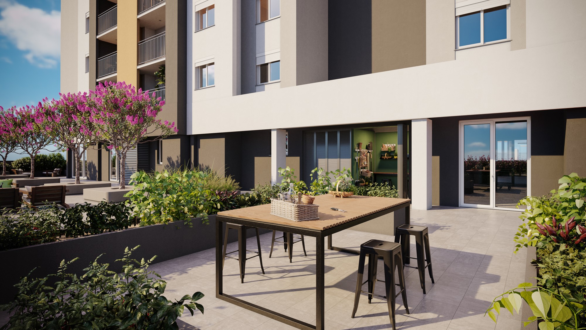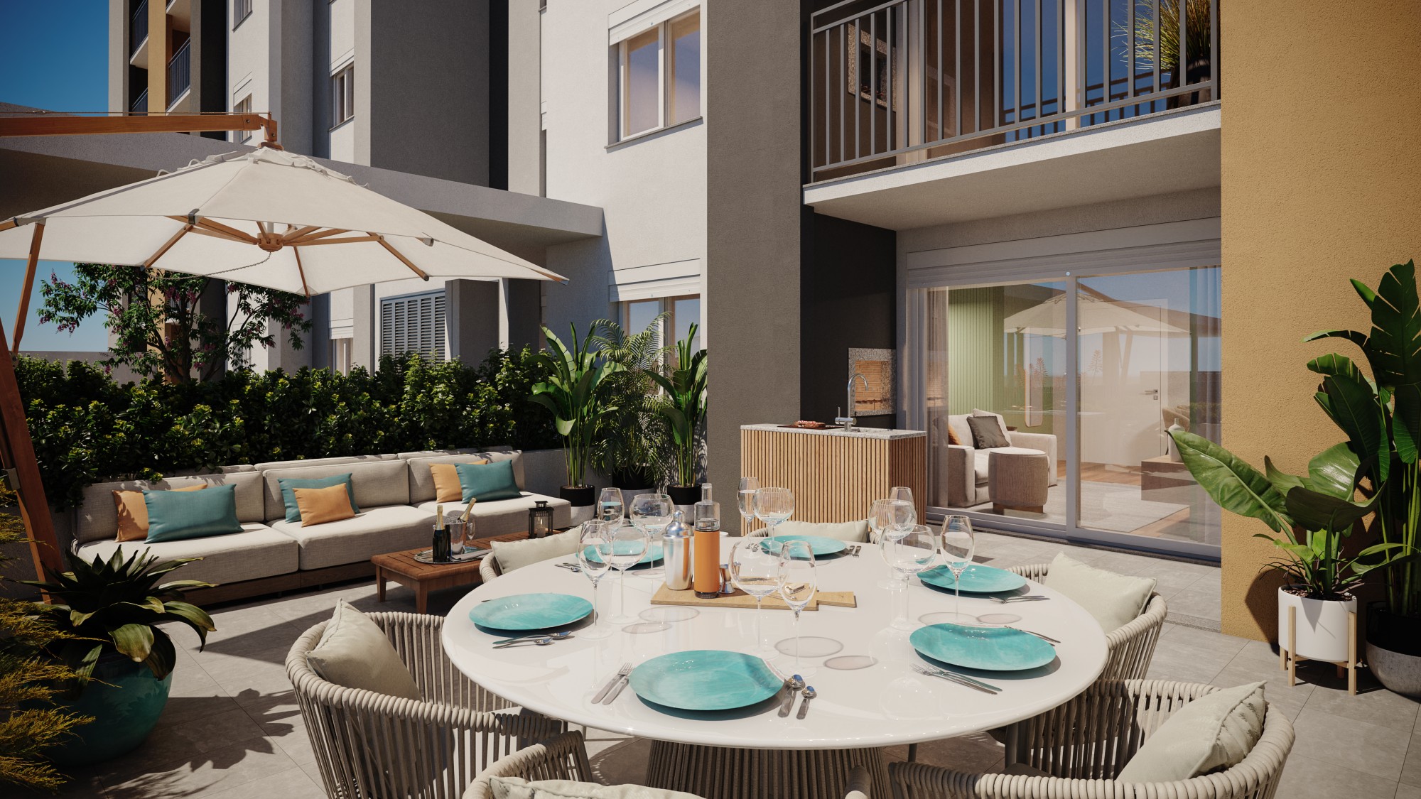 O padrão construtivo europeu assinado pela Porto5 que você já conhece está presente no Smart Living, com isolamento térmico e acústico, piso porcelanato nas área sociais e laminado nos quartos, esquadrias de alumínio e automação em todas unidades.