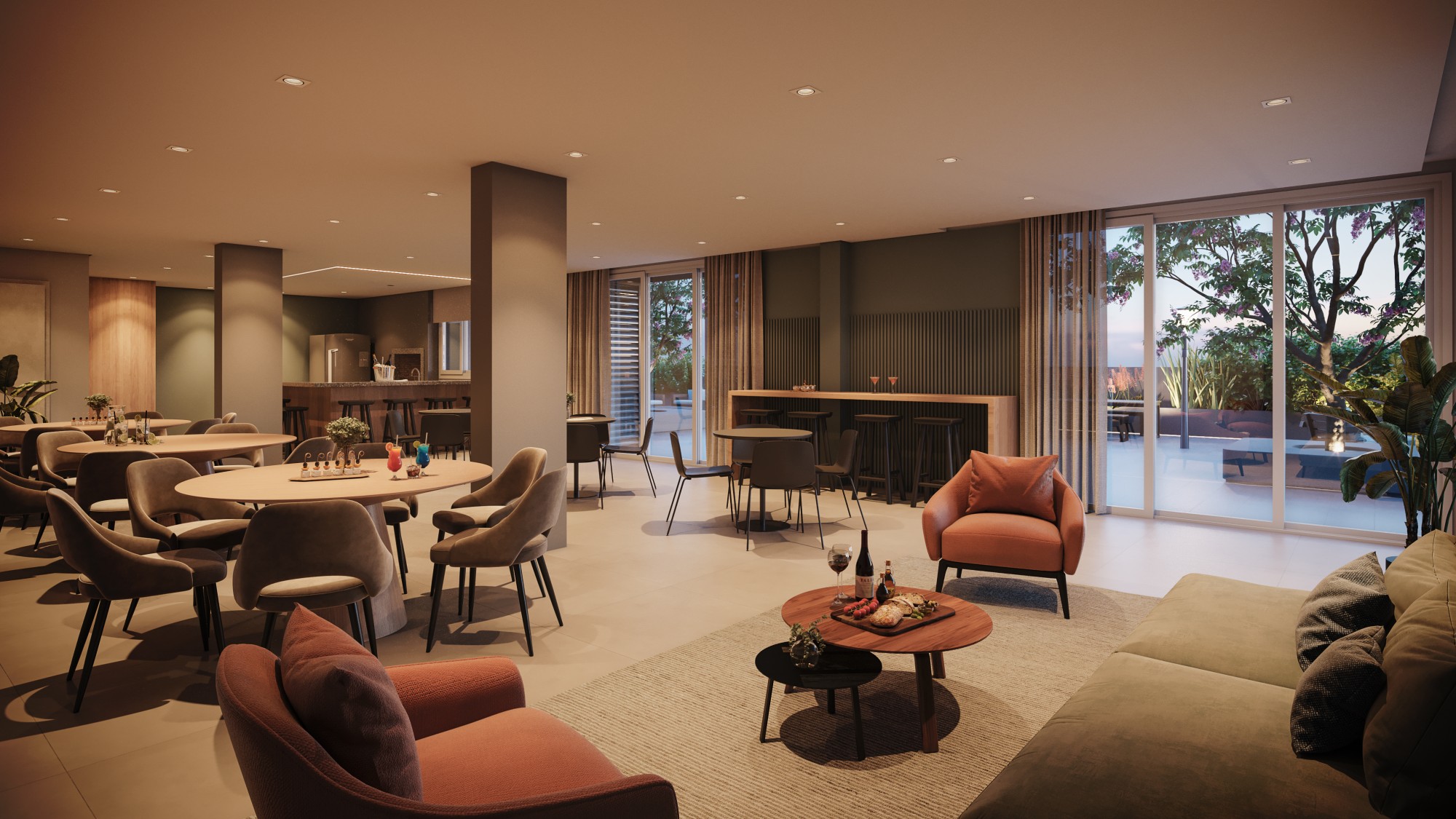 - Lounge com jogos e espaço pub