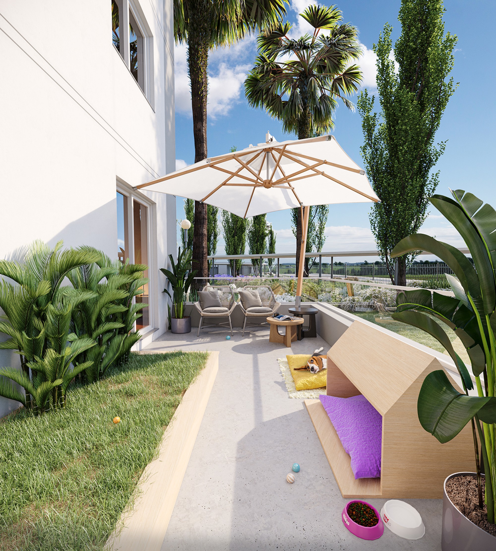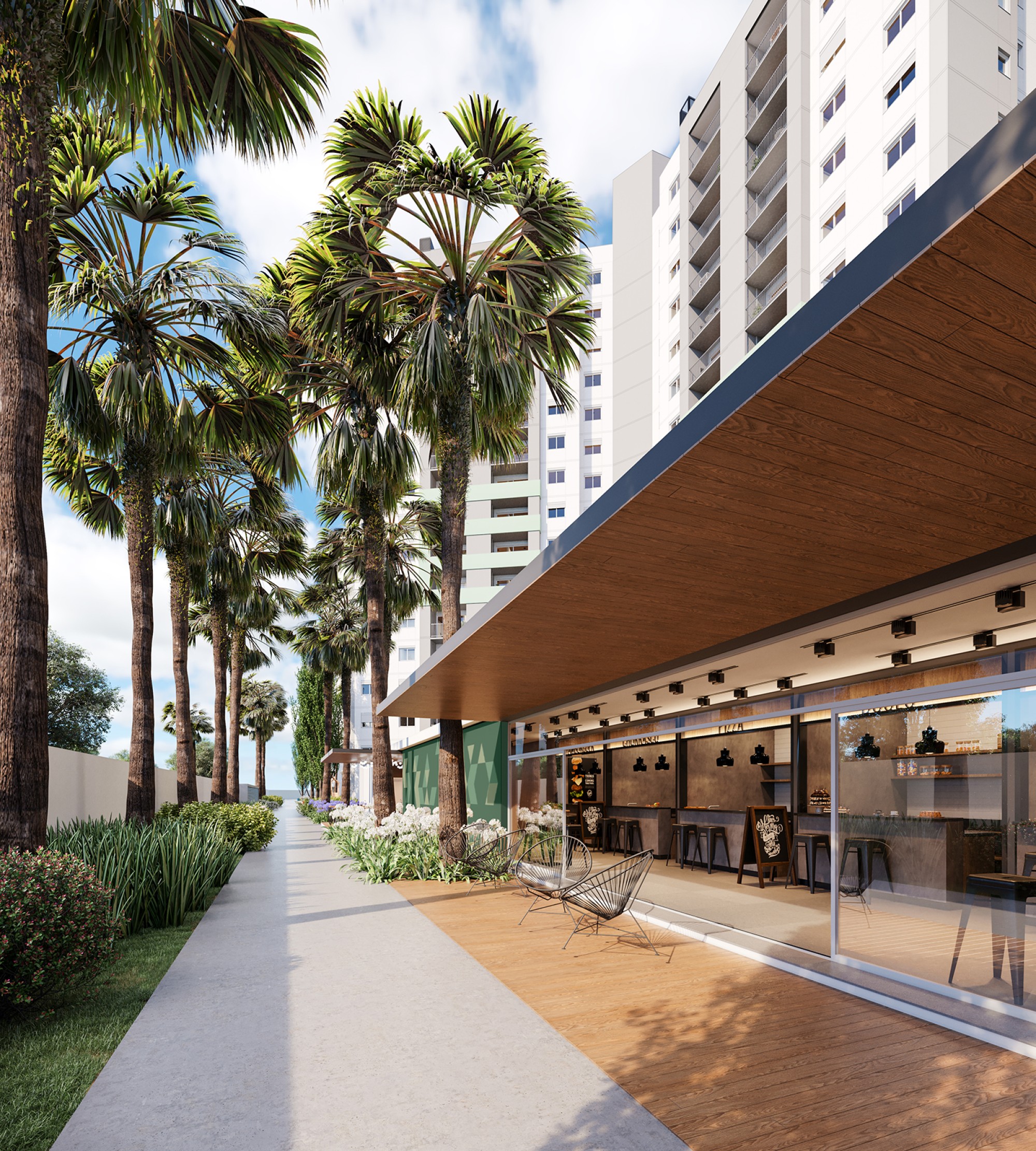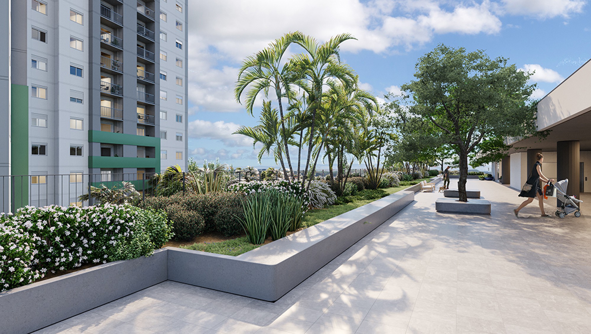 Tudo isso sem perder a conexão com a natureza. Por isso, o empreendimento conta com um projeto de paisagismo especial, assinado pelo arquiteto Frederico Karam da Inflorescência Paisagismo, que traz espaços verdes harmônicos e exuberantes para o seu dia a dia.